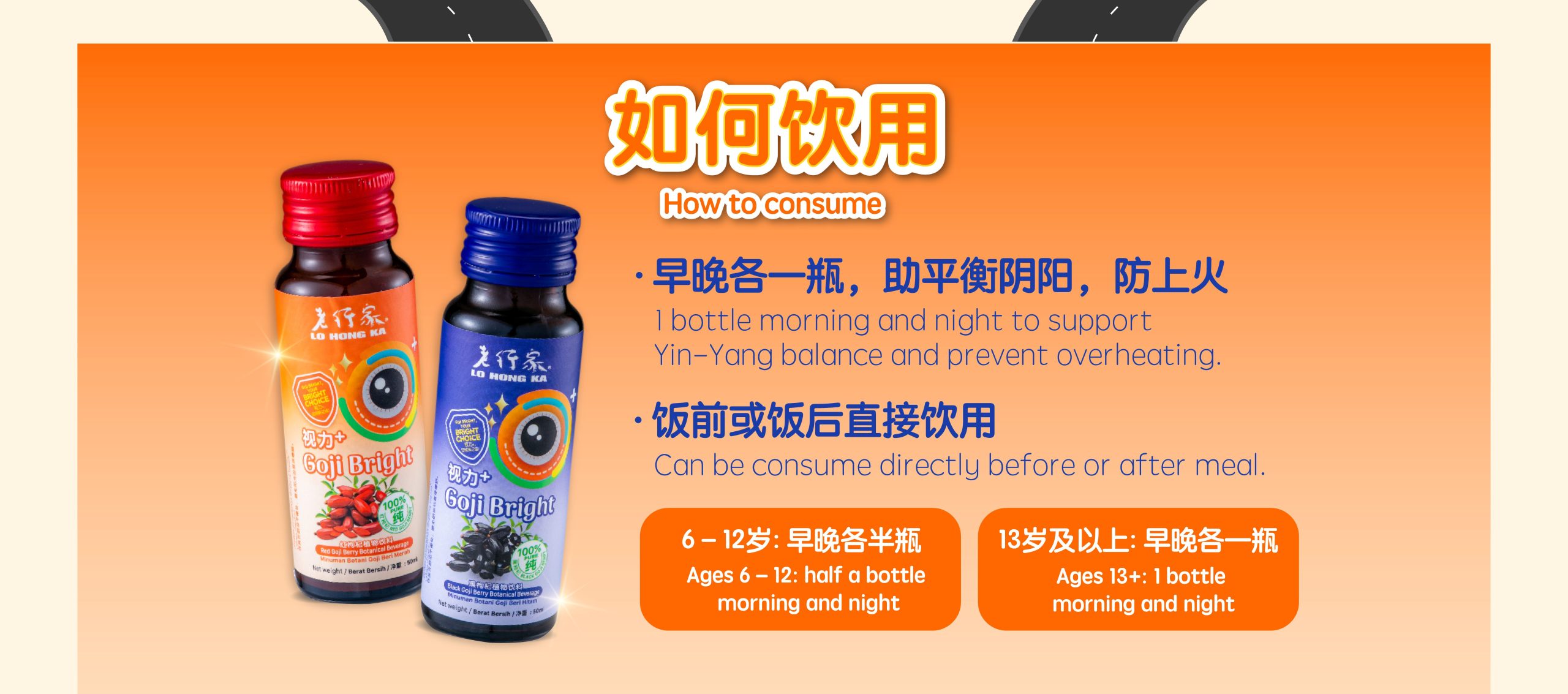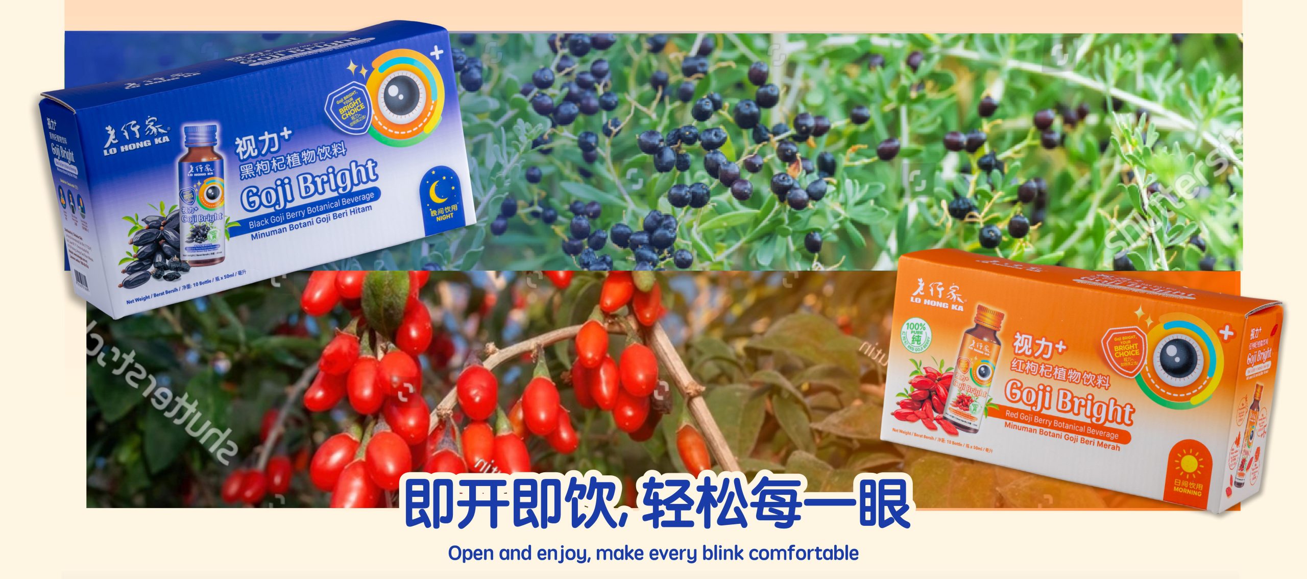 Lo Hong Ka Vision+ Black Goji Herbal Drink is specially formulated as a traditional herbal beverage to help soothe and relax the eyes during nighttime rest.
