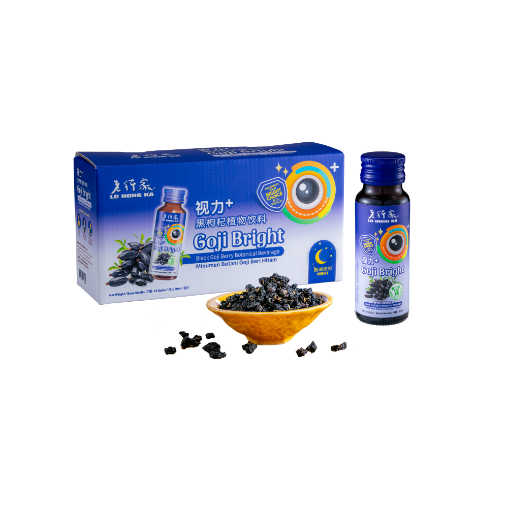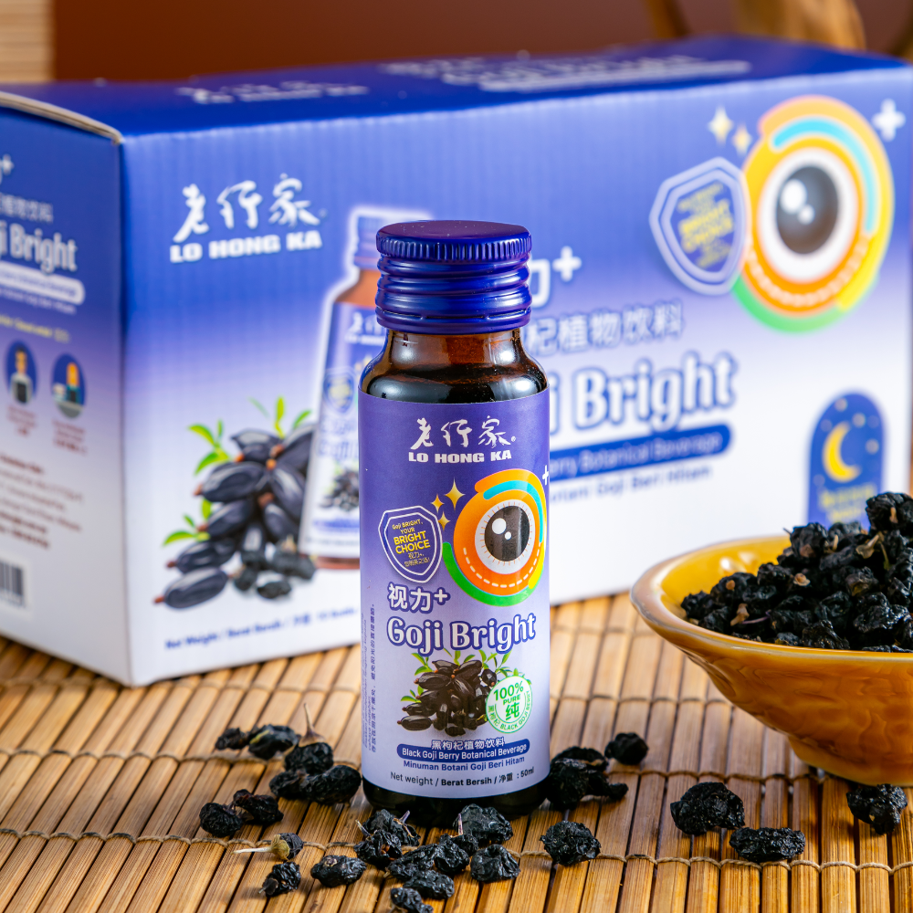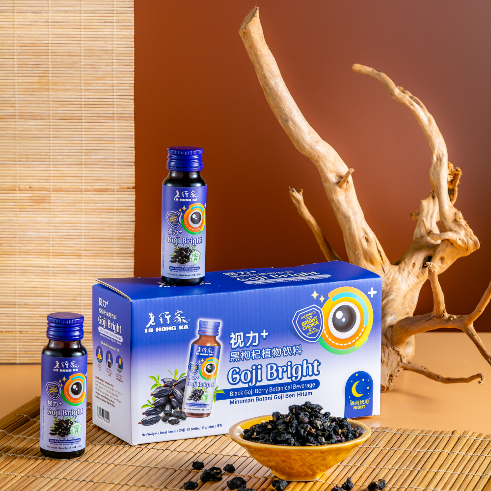 Lo Hong Ka Vision+ Black Goji Herbal Drink is specially formulated as a traditional herbal beverage to help soothe and relax the eyes during nighttime rest.